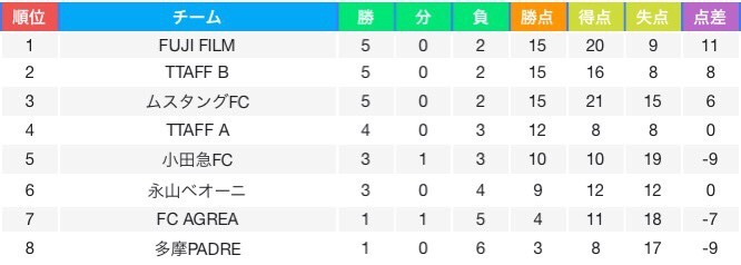 8位:多摩PADRE FC 0pt