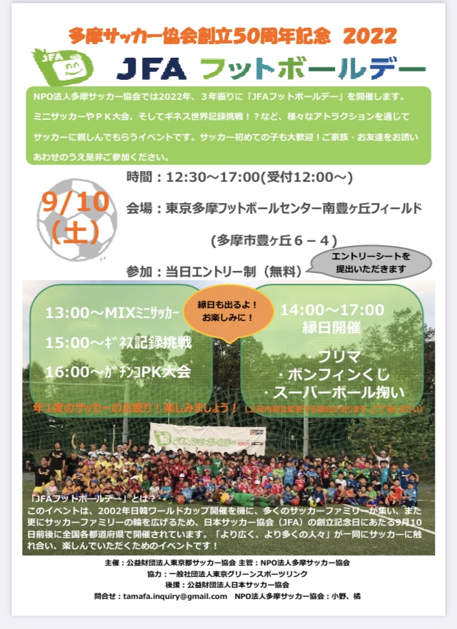 JFAフットボールデー in Tama city 開催します!